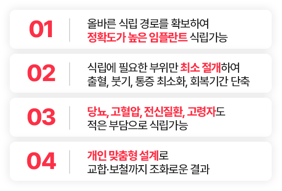 · 당일 임플란트 식립의 경우 개인에 따라 차이가 있어 불가할 수 있습니다.
