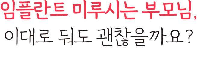 · 임플란트 시술 시 교합이상, 신경손상, 염증 등의 부작용이 발생할 수 있습니다.