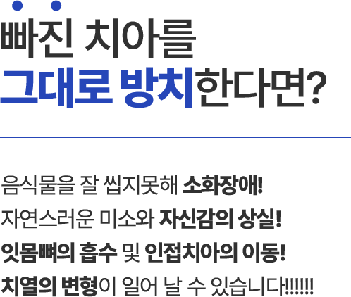·임플란트 시술 시 교합이상, 신경손상, 염증 등의 부작용이 발생할 수 있습니다.