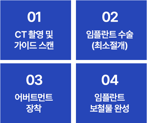 ·개인의 구강 상태에 따라 방문 횟수, 식립 개수, 뼈이식 등 시술 방법이 변동 될 수 있습니다.